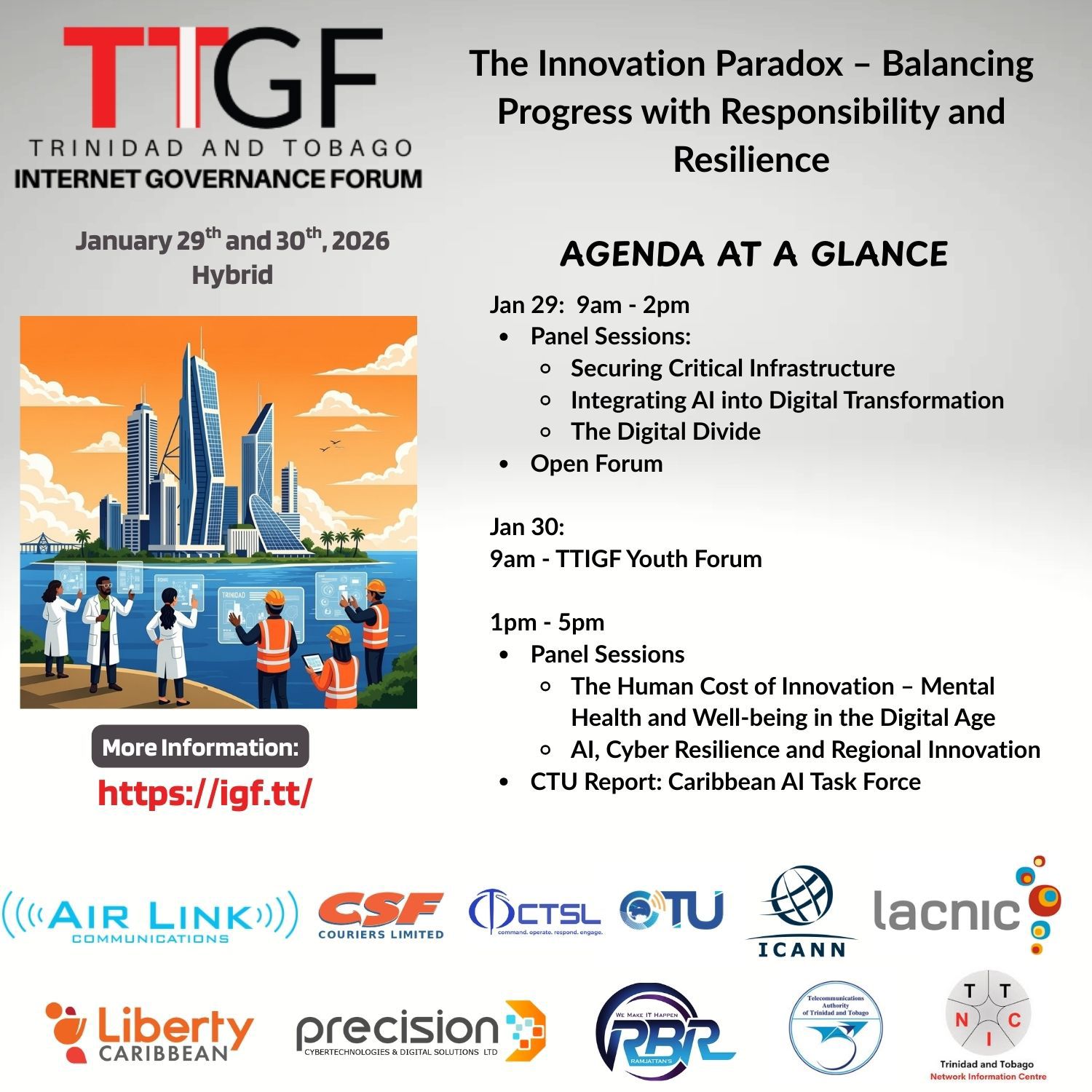 The 10th Annual Trinidad and Tobago Internet Governance Forum (TTIGF) 2026 will be held on January 29 and January 30, 2026.