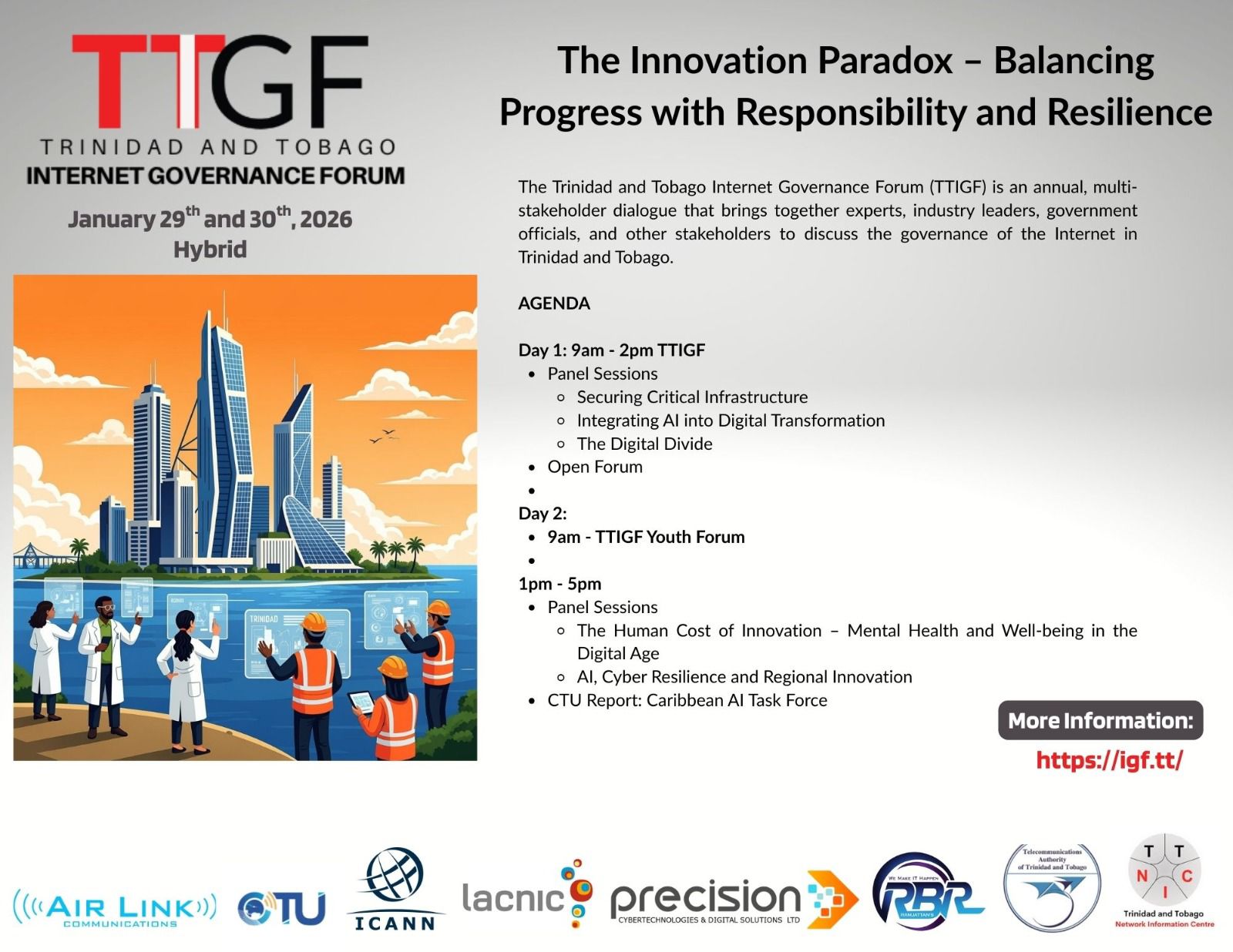 The 10th Annual Trinidad and Tobago Internet Governance Forum (TTIGF) 2026 will be held on January 29 and January 30, 2026.